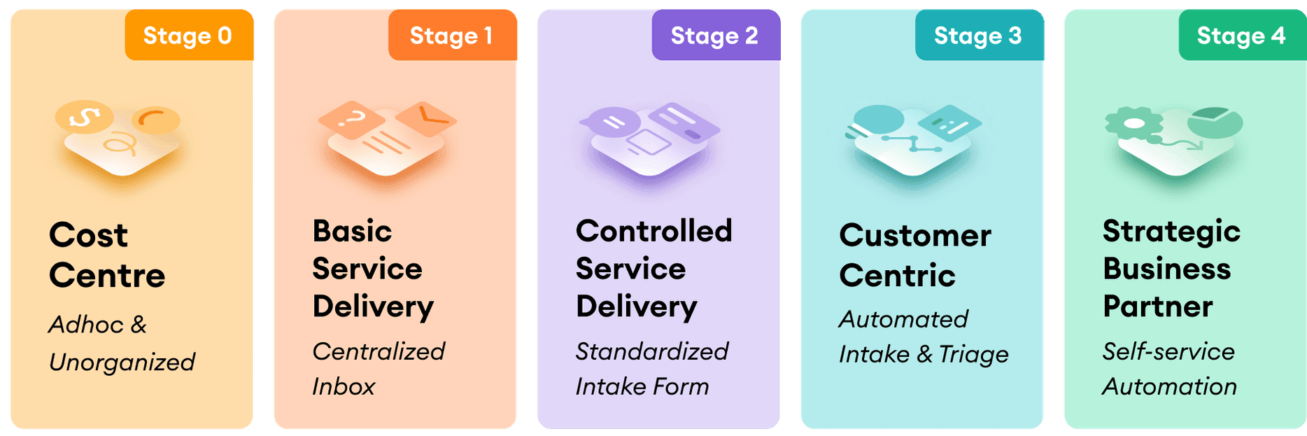 At Checkbox, we created a maturity model for legal service request management, from an unorganized cost center to a valued strategic business partner.
