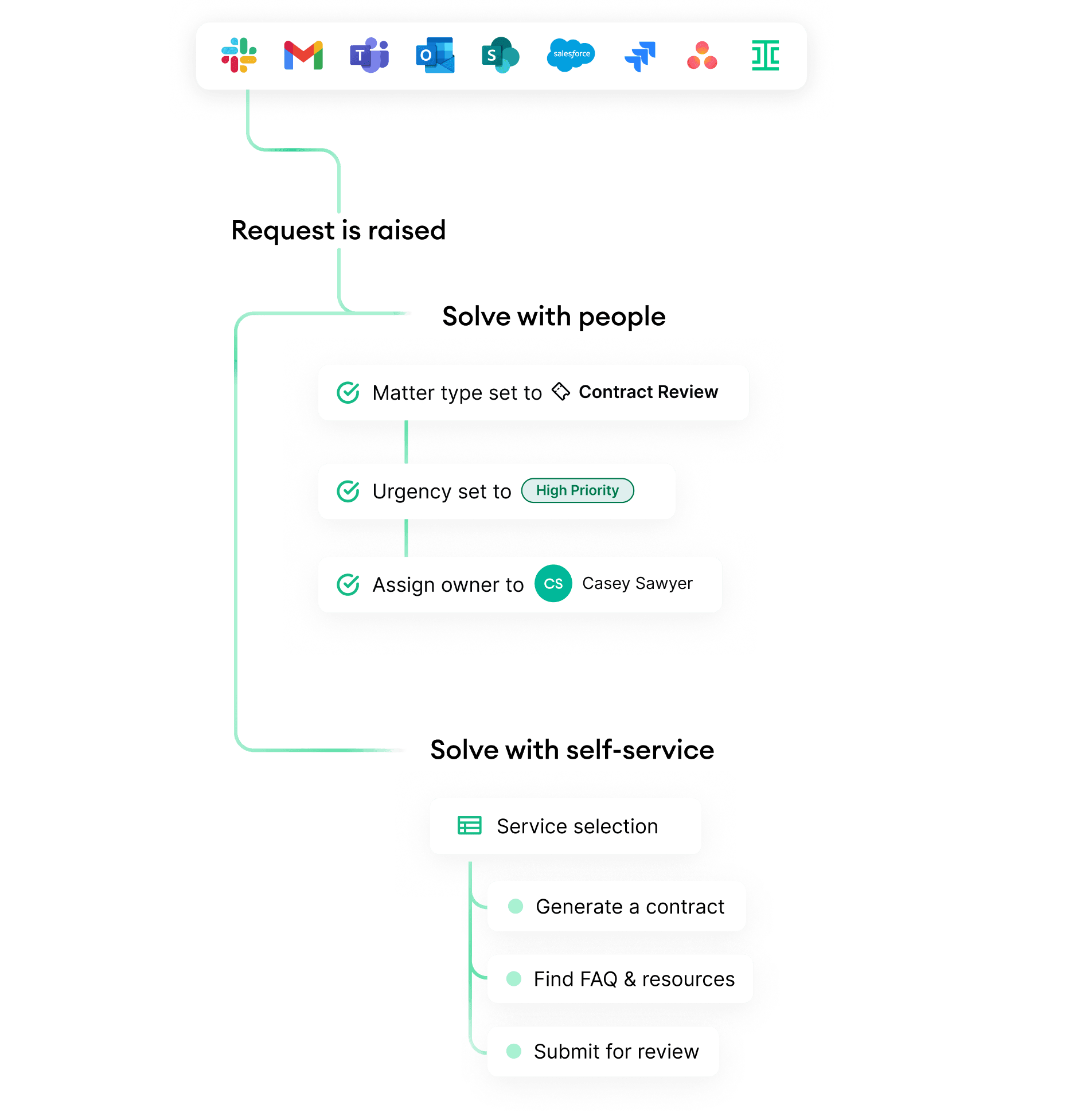 In larger legal teams, resource allocation is a challenge, where requests aren’t being assigned efficiently based on lawyer specialization or capacity.